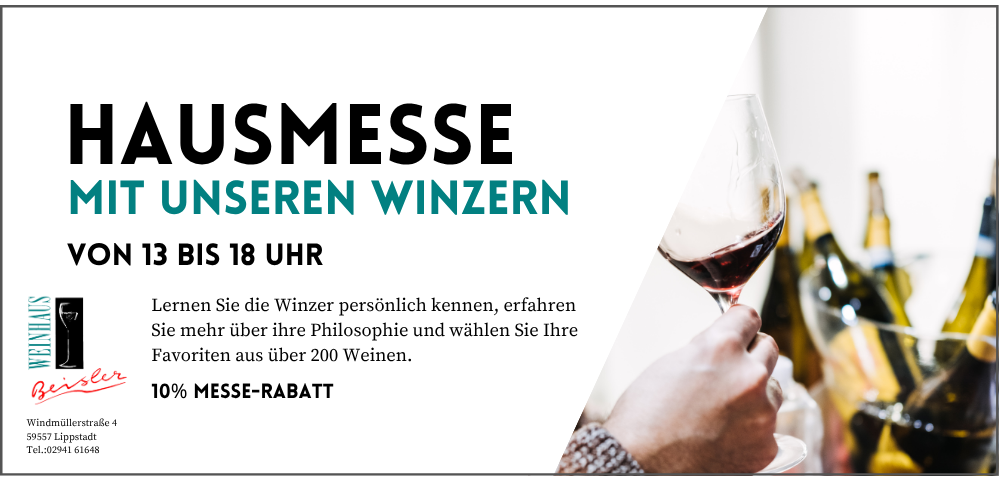 Unser Kunde, das Weinhaus Beisler, richtet am 15. November eine Hausmesse aus und wir sind natürlich mit dabei. Sie haben die Möglichkeit in ungezwungener Atmosphäre aus über 200 Weinen Ihren Favoriten auszuwählen und mit den Winzern über deren Philosophie zu diskutieren.