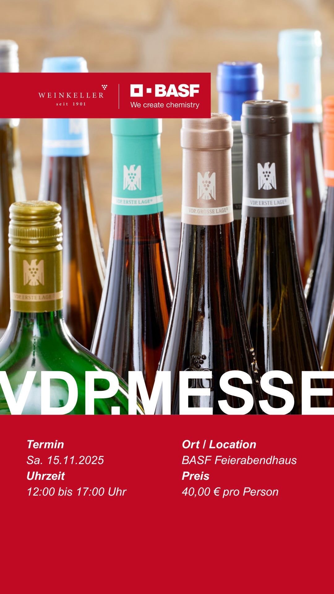 Der BASF Weinkeller richtet auch in diesem Jahr wieder eine VDP. Weinmesse aus.