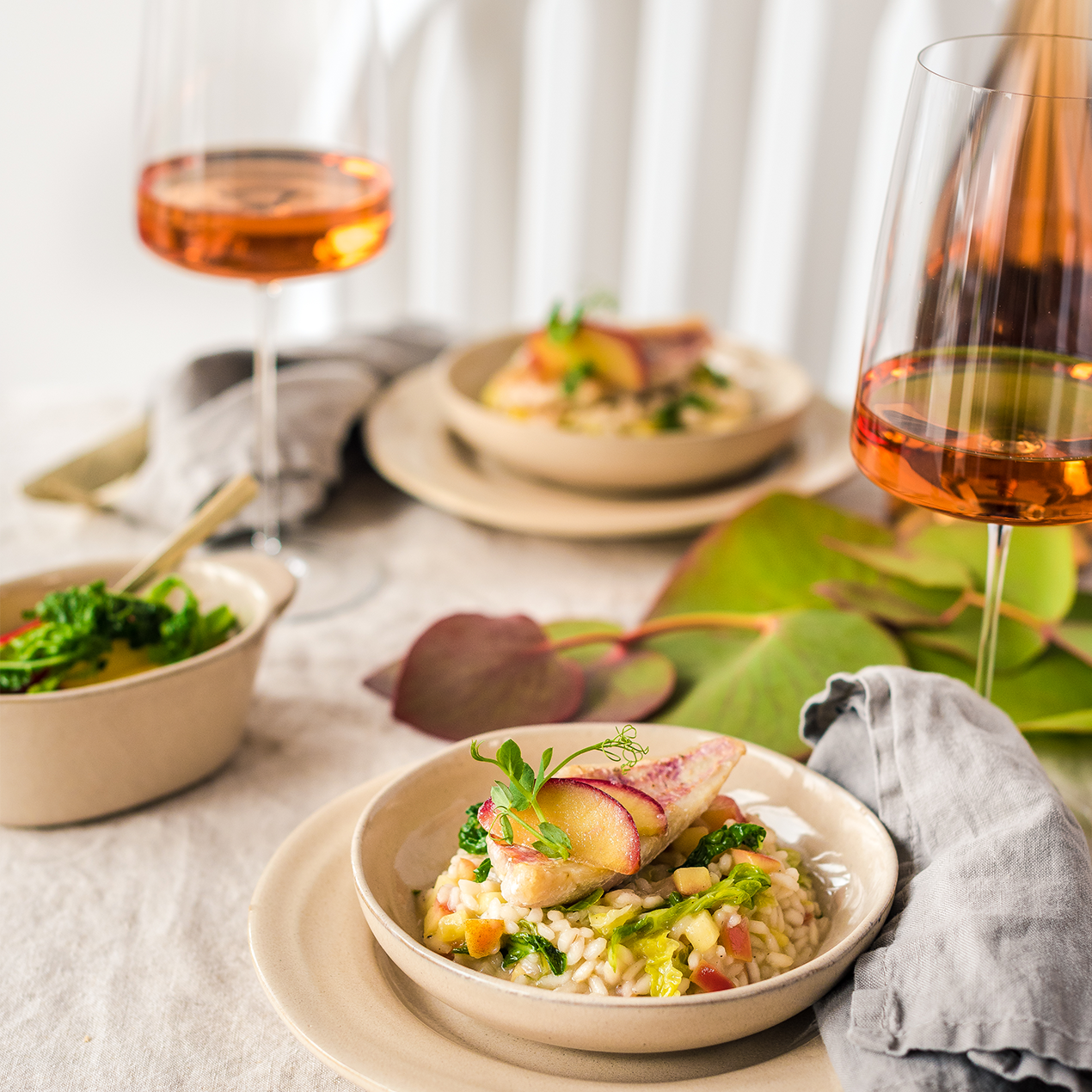 Großartiges Essen („Food“) und 2 x 2 Schwestern („Sistas“) — das Erfolgsrezept für einen unserer deutschen Lieblingsblogs: Foodistas! Die vier Bloggerinnen interpretieren aufregende Rezepte in ihrer ganz eigenen charmanten Art und setzen sie fotografisch anspruchsvoll in Szene. Wir haben sie deshalb gebeten, zwei passende Gerichte zu unserem neuen Wunderschön Rosé zu entwickeln. „Wir freuen uns riesig darüber, heute bei unseren Freunden von St. Antony zu Gast zu sein. Als Foodblogger lieben wir die Kombination aus gutem Essen und einem tollen Wein“, sagt Tanja Farwick. „Passend zum Wunderschön Rosé haben wir uns zwei winterliche Rezepte ausgedacht: eine cremige Schwarzwurzelsuppe mit Petersilienöl und ein Wirsing-Apfel-Risotto mit Roter Meerbarbe. Das auf der Haut knusprig gebratene Fischfilet macht diesen Hauptgang zu einem wahren Gaumenschmaus. Nachkochen unbedingt empfohlen!“